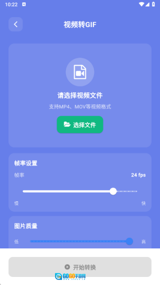 2、进入视频转GIF页面后,先选择需要处理的文件,接着对各项参数进行设置,最后执行转换操作就可以了。