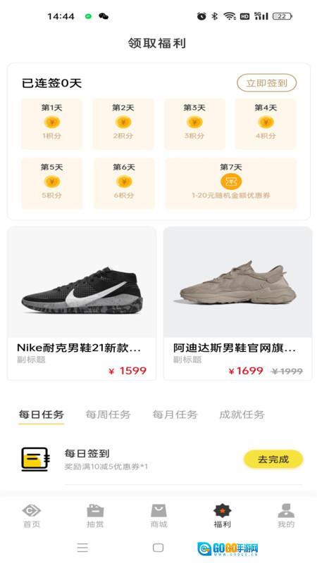 4、在福利页面,你既能用闪币兑换各类福利,也能通过每日签到领取金币。