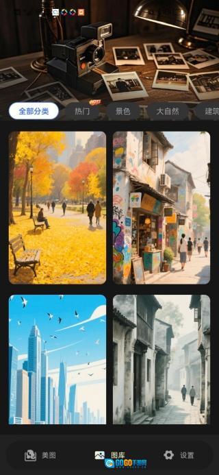2、点击图库,这里有大量精美的壁纸,你可以按照不同的分类来查找和使用。