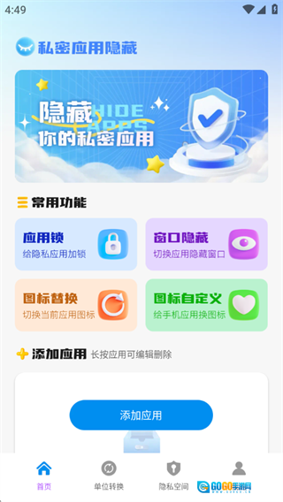 2、具备多种隐私保护功能,支持将指定应用添加后进行安全隐藏。