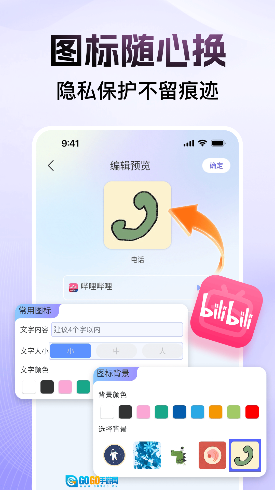 3、支持替换应用图标,可将隐藏应用伪装成常规的系统应用。
