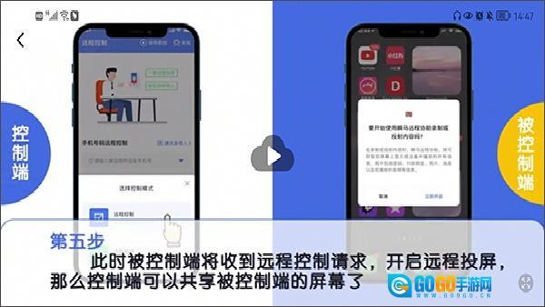 5. 当被控制手机接收到请求后,开启远程投屏功能,控制手机就可以共享它的屏幕了。