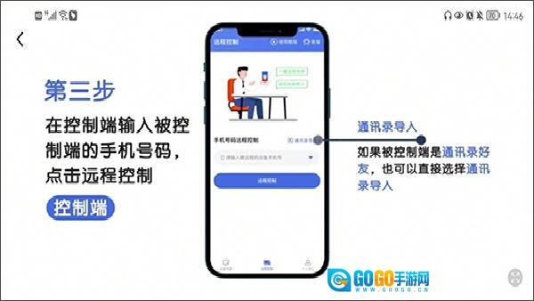 3. 在控制端手机上输入被控制手机的号码,也能从通讯录里导入该号码。