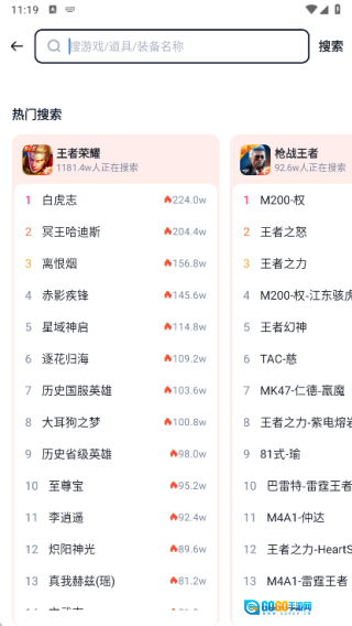 3、在搜索页面输入游戏、道具或装备的名称,即可快速检索到相关内容。