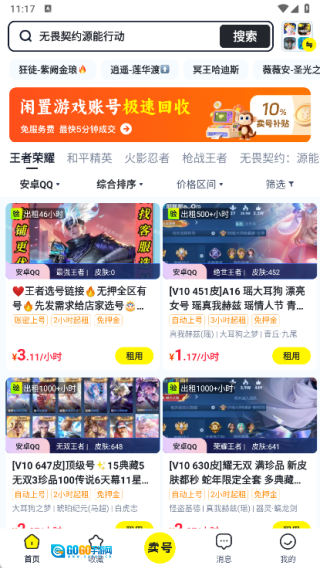 2、把账号租赁、交易与回收功能整合到同一个平台上,无论是想租号畅快游玩、买卖账号,还是将闲置账号变现,都能在这一个平台上一站式搞定。