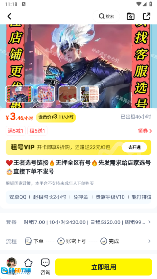 3、之前租号时碰到上号卡顿的问题,联系24小时在线客服后很快就处理好了,并且账号和描述完全相符,没遇到虚假账号的情况。