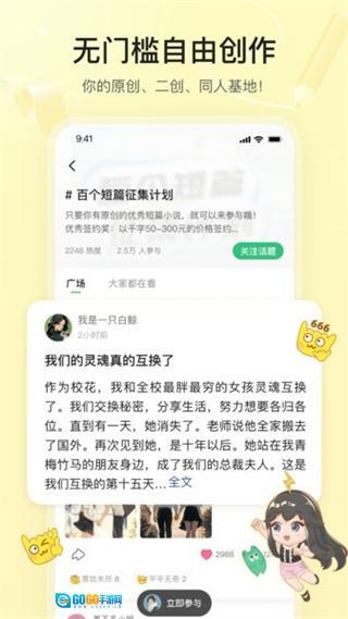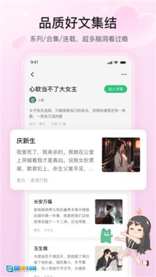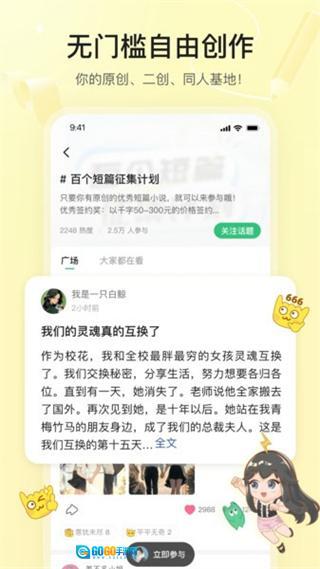 汇聚超甜少女心、精彩推理等多品类原创连载故事,覆盖不同读者的阅读偏好,且持续更新优质原创内容,让用户能随时找到感兴趣的故事。