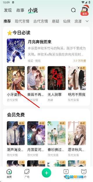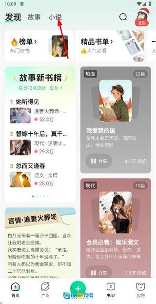 1、在首页点击小说选项,进入小说页面。