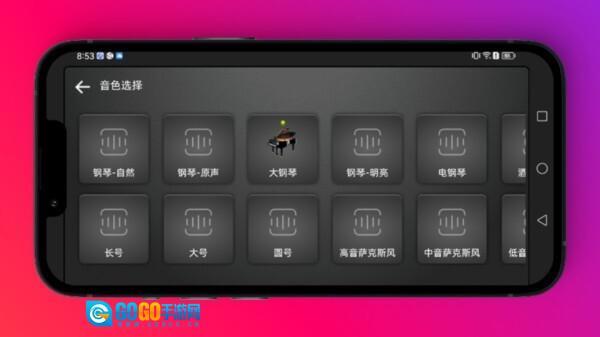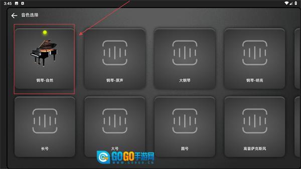 3、在【音色选择】界面,挑选【钢琴-自然】这类音色选项,以此切换钢琴的发声效果,从而满足不同的演奏需求。