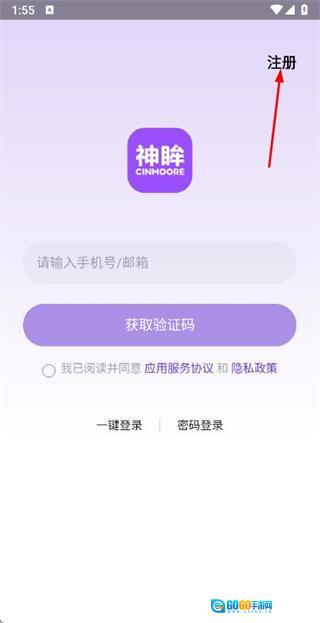 2、在账号注册页面填写手机号码后,点击注册按钮以获取验证码。