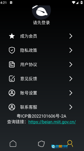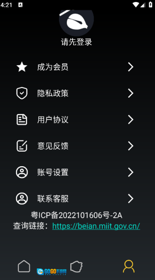4. 点击页面右下角的图标,就能登录账户,同时可以查看隐私政策、用户协议等相关信息。
