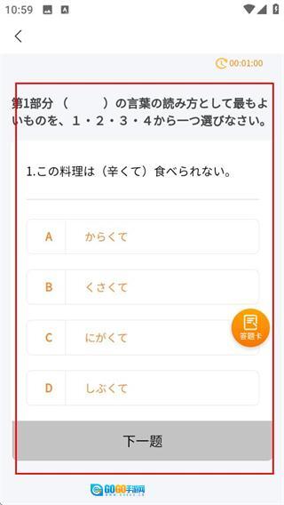 2、进入日语题库页面后,找到并点击想要作答的目标试题,即可进入对应的题目作答页面。