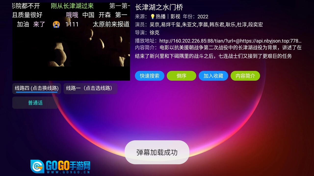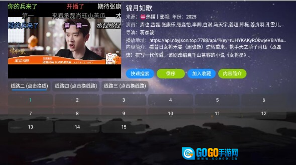 4.进入播放页面,支持收藏、切换播放源等操作