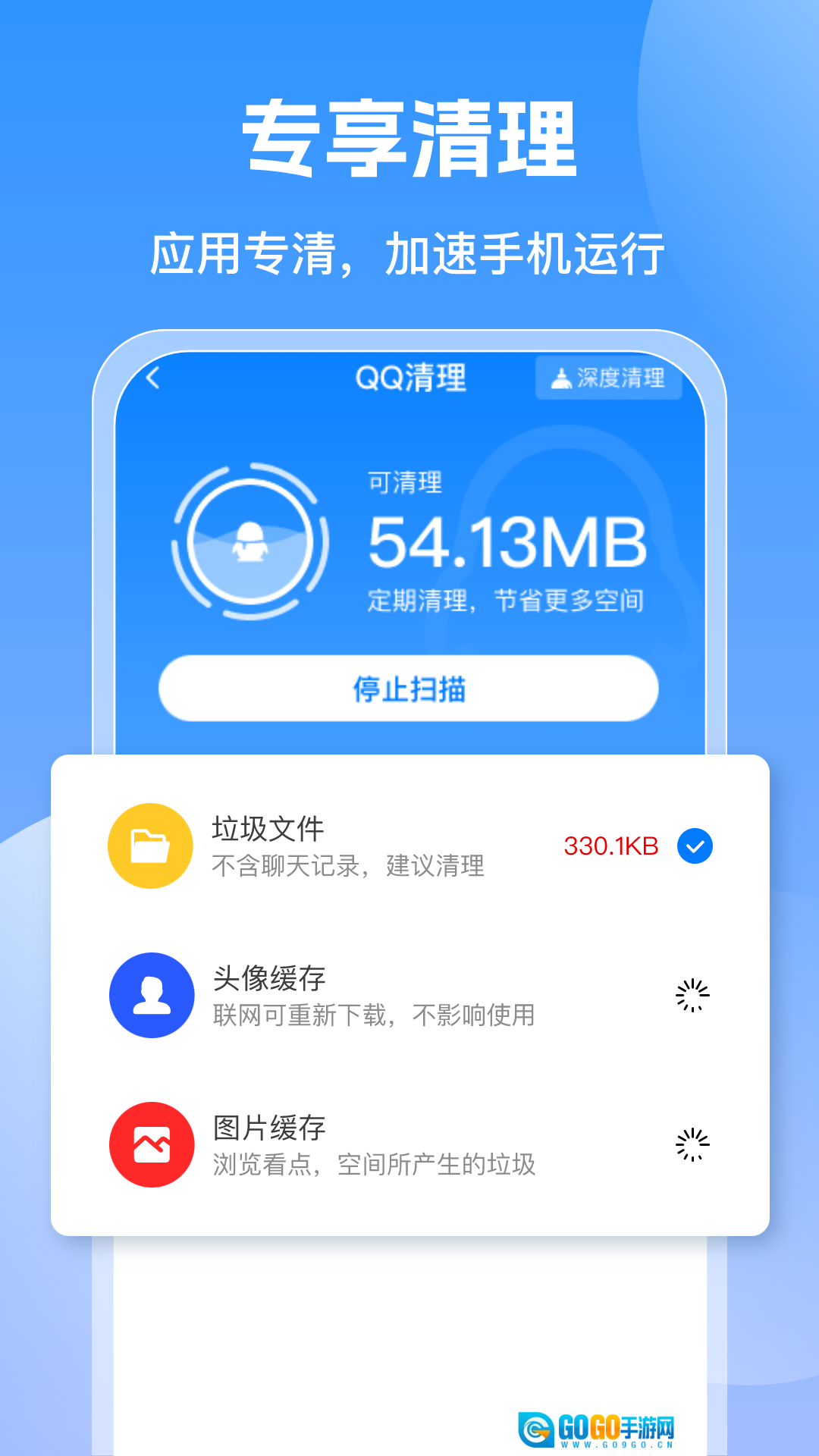 3、针对微信、QQ这类常用应用打造专属清理功能,可深度清理聊天缓存以及图片视频残留,从而释放更多存储空间。