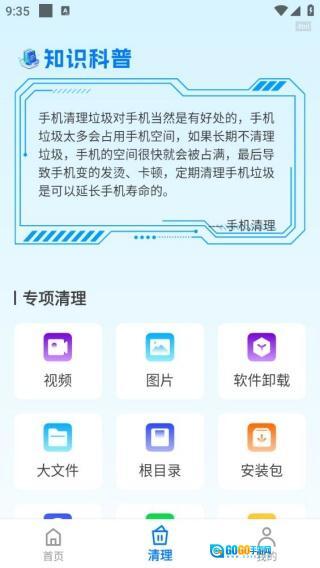 3、清理界面设有知识科普板块,同时支持专项清理功能,操作便捷。