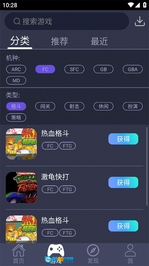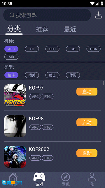 4、在分类页面中,您可以通过滑动浏览挑选,或在搜索栏输入关键词搜索想要玩的街机游戏,点击即可进入游戏。