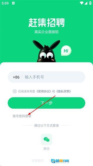 2、进入登录初始页面后,选择账号密码登录选项,即可切换到账号密码登录界面。