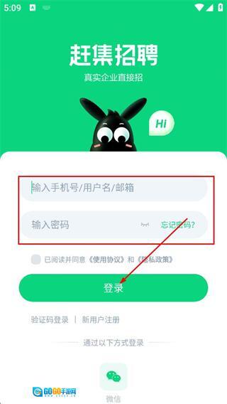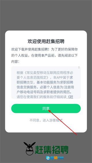 1、在赶集招聘的欢迎弹窗里,点击同意相关服务说明,即可进入登录初始页面。