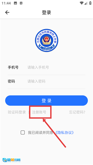 2、在登录界面点击【注册账号】选项,切换至注册页面,准备填写注册所需的各类信息。