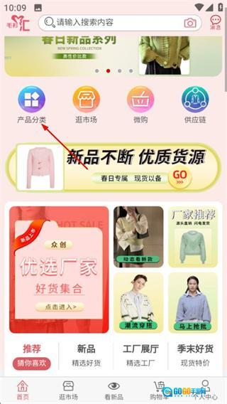 1、进入毛衫汇首页后,点击产品分类选项,即可进入产品分类页面。