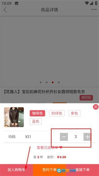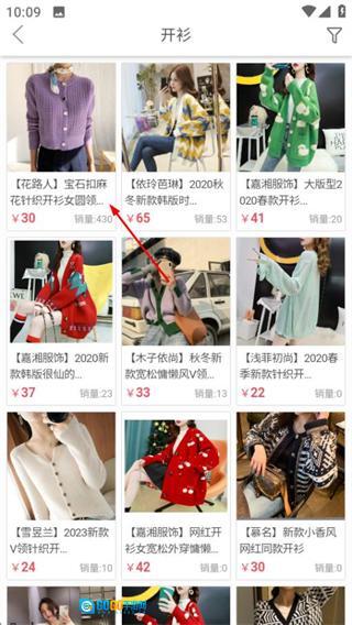 3、在开衫商品列表页面,点击目标商品,进入该商品的详情页面。