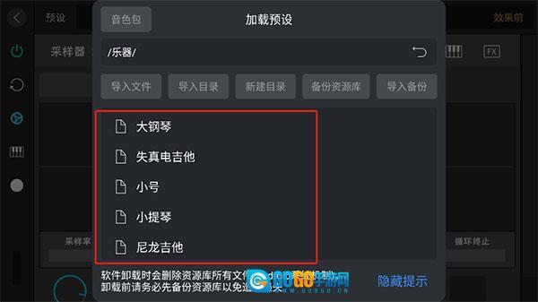 2、在音色列表中,选择需要添加的对应音色完成导入。