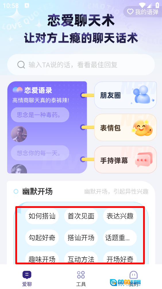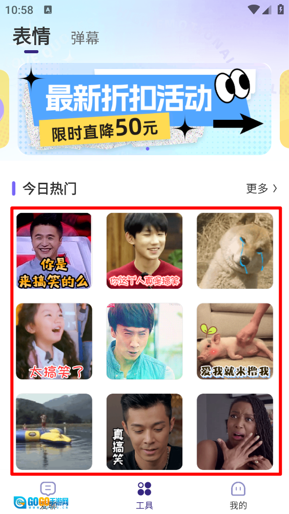 4、切换"工具",添加表情包和弹幕,快速发送。