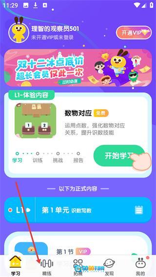 1、在当前页面点击底部的【精练】按钮,即可切换到精练页面。