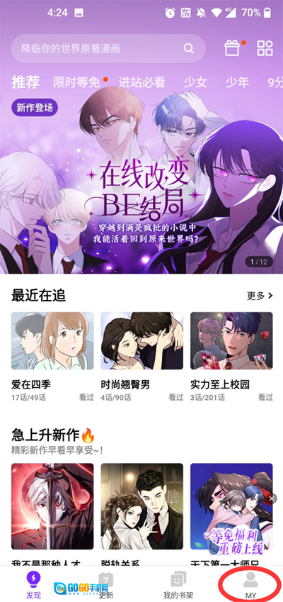 1、首先在当快站免费好咚漫漫画,进入到主页面后选择“my”功能按钮。
