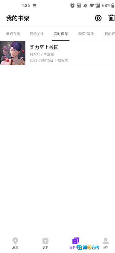 4、最后就能在“我的书架”里找到临时保存的漫画啦!
