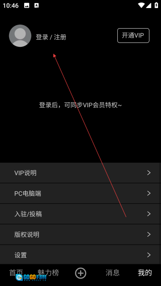 2、进入我的页面后,点击【登录/注册】。