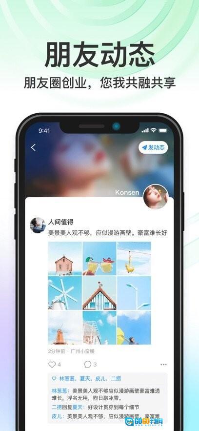 这是一款社交电商类应用,它打通了全民直播的渠道,用户不仅可以在直播板块观看他人的直播内容,还能自己开启直播进行表演或带货。应用内分类展示着各类动态内容,设有公开的广场动态板块,同时也配备了好友圈动态板块。