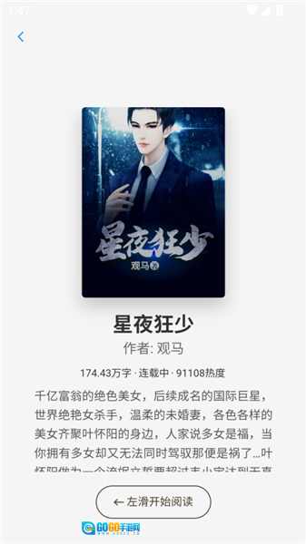 4、点击一本小说,左滑开始阅读。