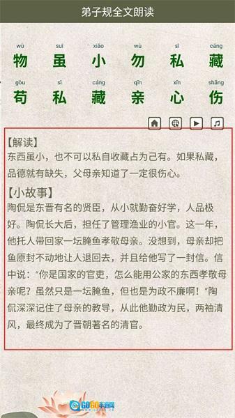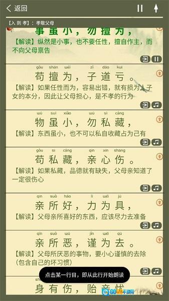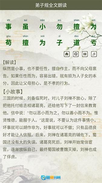 1、打开软件之后就会直接显示弟子规内容。