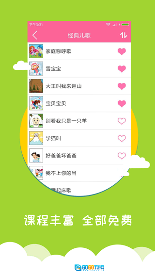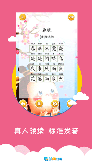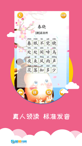 这是一款专为0-6岁儿童及其家长打造的早教育儿应用,让家长从此无需为宝宝的学习发愁。它精心收录了识字、英语单词、唐诗、儿歌、成语故事、国学、绘画等丰富多样的常见课程。每个汉字都配有对应的图片和真人标准发音,宝宝在学习的过程中,还能认识动物、水果、蔬菜、运动等各类事物,并且融入了部分趣味娱乐元素,能有效激发宝宝的学习兴趣。其中,唐诗和儿歌板块都配有精美的相关图画,再加上优美动听的旋律,宝宝一定会爱不释手。