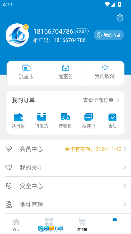 2.接着进入个人中心页面,点击底部的“地址管理”功能按钮,即可进入下一步操作。