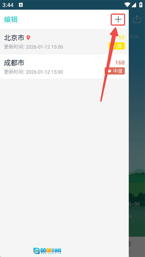 1、进入空气质量发布,点击右上角的”+“号;