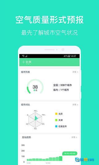 1、城市空气质量状况实时发布:随时掌握关注城市的空气质量情况,向公众提供出行及健康指引,数据更新最及时;
