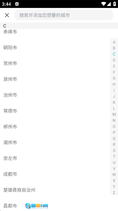2、这里有当前定位的城市,也可以选择添加其他城市;