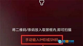 5、进入扫一扫界面,点击【手动输入IME1或SN码】;