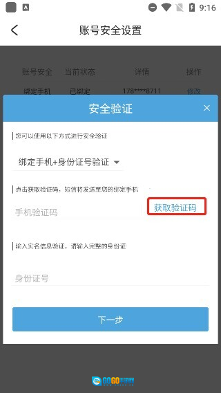 5、随后可通过原绑定手机号验证与身份证号码相结合的方式,完成绑定手机号的验证及修改操作
