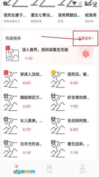 在应用首页的【热度榜单】区域,点击右上角的【完整版单】按钮,就能查看更全面的书籍排名榜单。