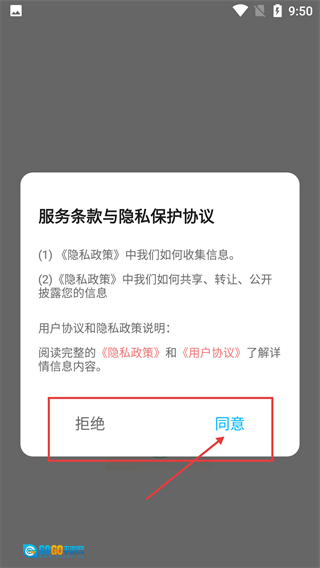 1、仔细阅读【服务条款与隐私保护协议】,熟悉【隐私政策】和【用户协议】的具体内容后,点击【同意】按钮,就能进入应用的主界面。