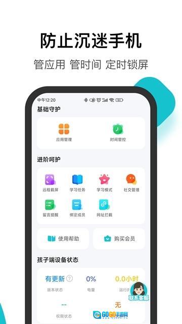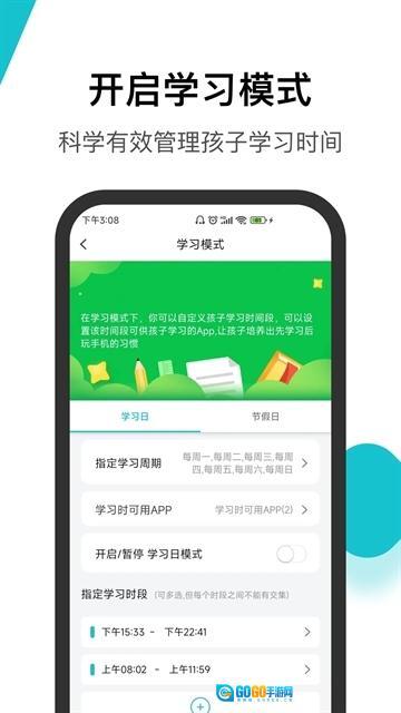 2、防止沉迷手机,管应用、管时间、定时锁屏等。
