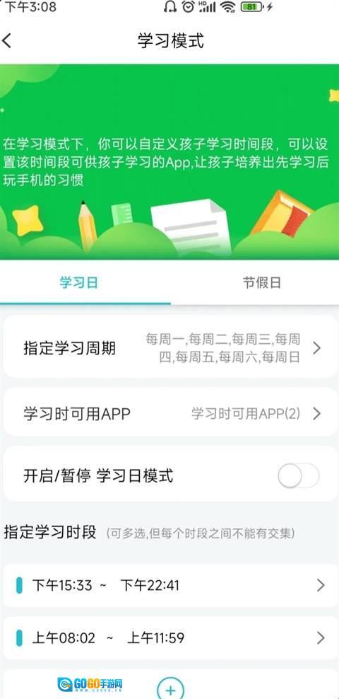 开启学习模式后,家长可以为孩子布置学习任务,孩子只有完成这些任务,才能接着使用手机;此外,系统还能依据国家法定节假日的安排,自动识别并匹配上学日与假日模式。
