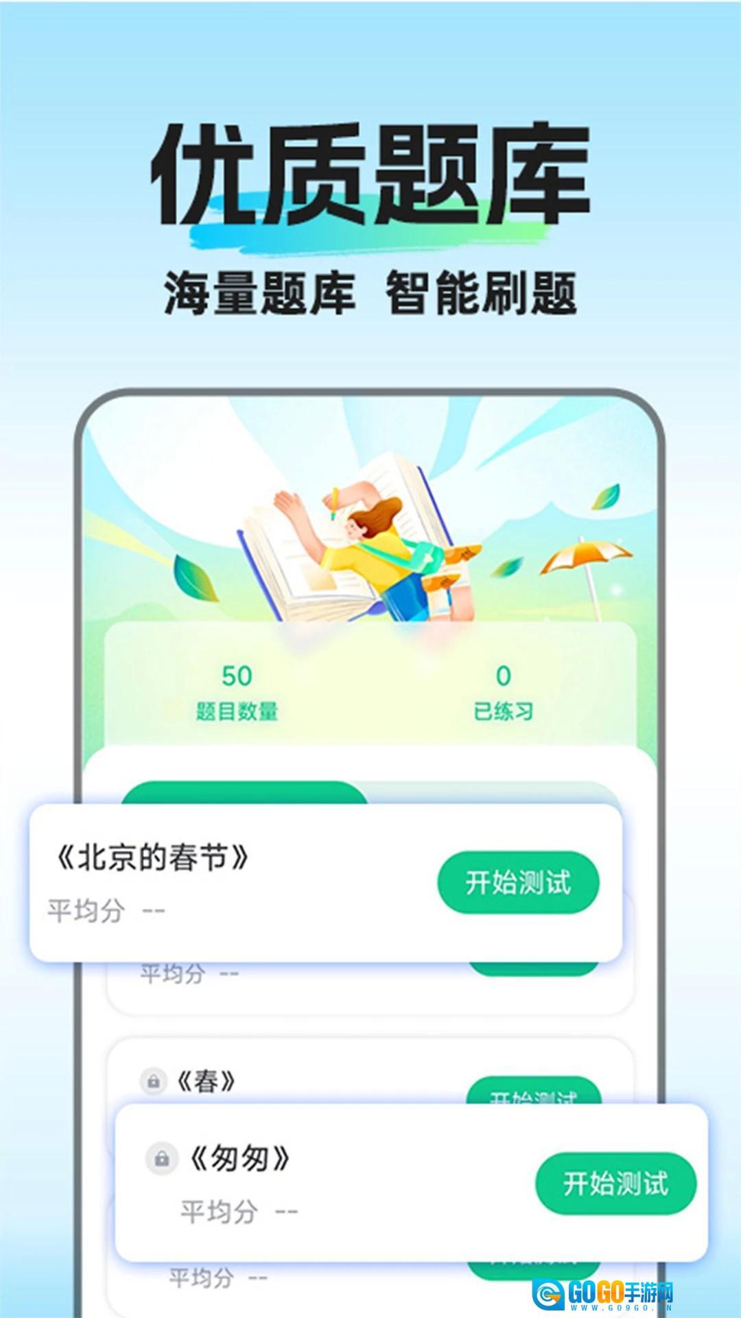 2、这个界面设计简洁清晰,操作逻辑简单易懂,用户能够快速上手,不需要复杂的操作步骤就能开启学习之旅。