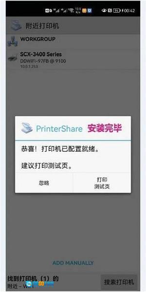 7、安装完成后,屏幕会显示“打印机已配置就绪”,此时就能够开展打印操作了。