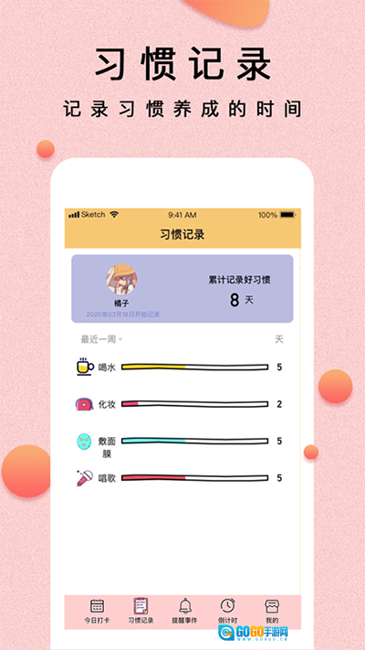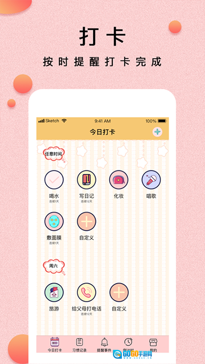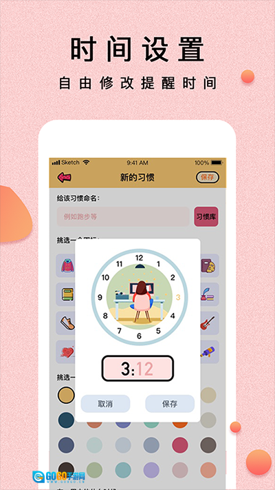 6、支持自由调整提醒时间,通过按时提醒助力用户完成打卡,帮助其养成规律的打卡习惯。