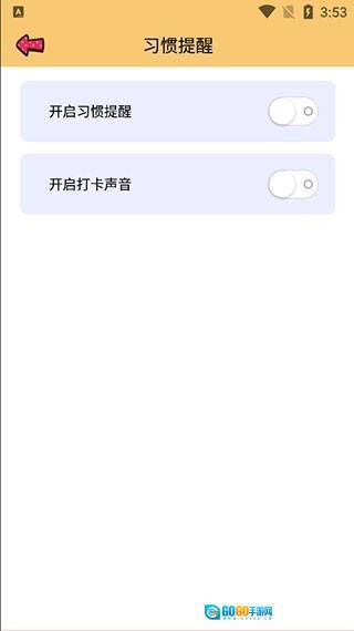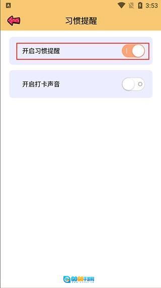 3、进入【习惯提醒】页面后,就能看到【开启习惯提醒】与【开启打卡声音】这两个选项。