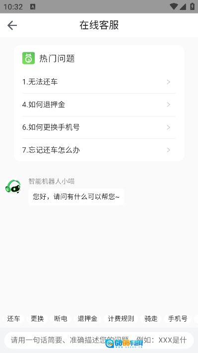 喵走出行是一款好用又实用的共享电单车应用,用户只需将手机与电单车连接,就能获得便捷高效的短途出行方案。用户可以快速定位附近车辆,扫码即可解锁使用。此外,喵走出行最新版本积极倡导绿色低碳的出行理念,其无桩设计和透明的计费模式,让用户享受经济实惠的骑行服务,而且客服电话与人工服务热线24小时保持在线!
